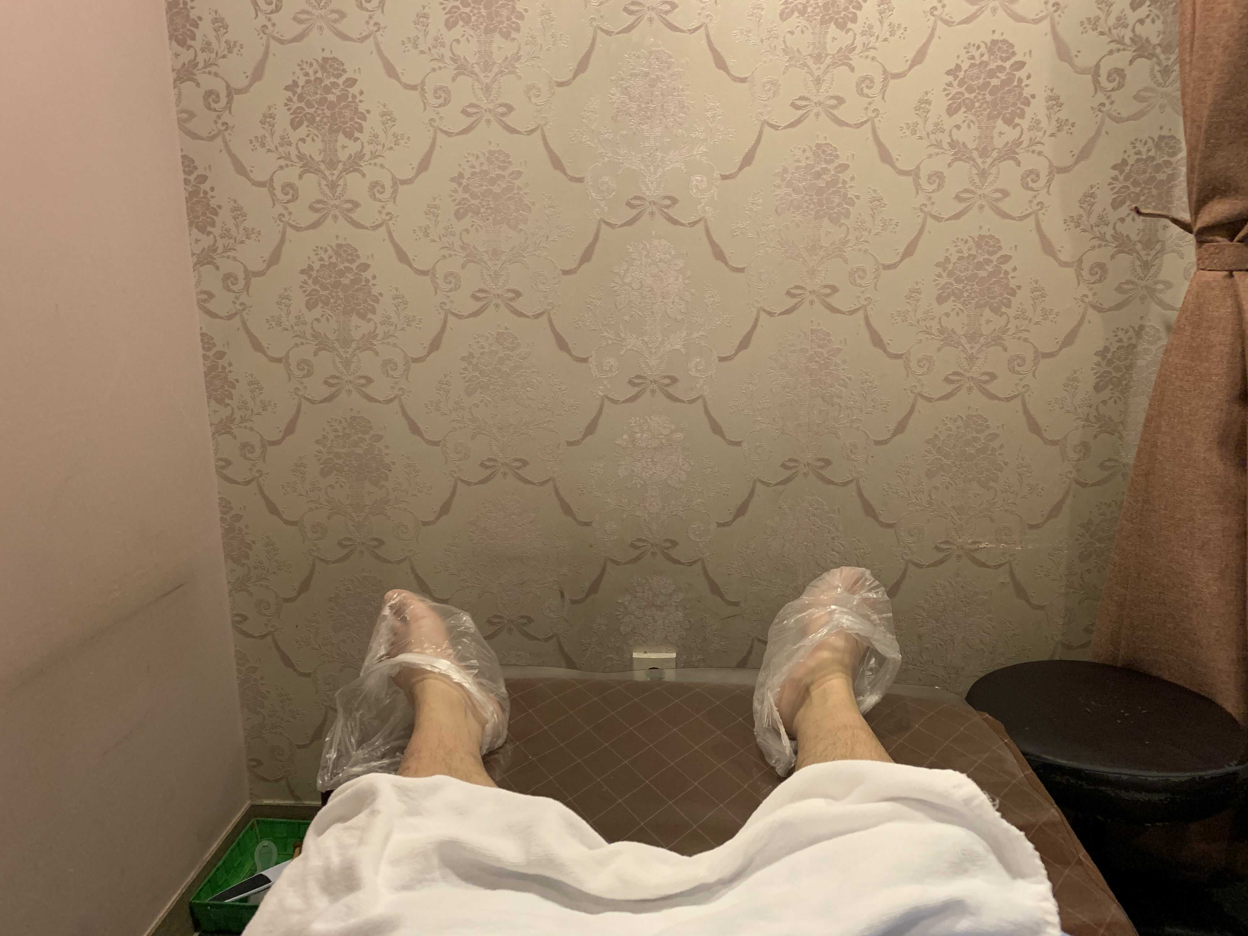 발만 받을거니까 바지만 입고 와달라고 해서 갈아입은 뒤 족욕을 위해 준비된 뜨거운물 대야에 발을 담궜다.